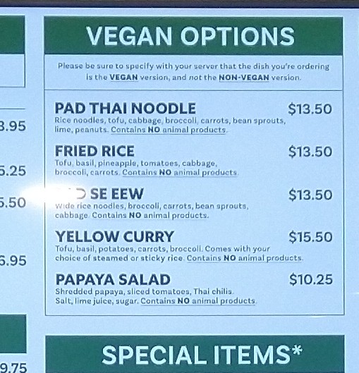 Vegetarian options and heartier platters like the delightful Papaya Platter, meant for sharing at $55.75, ensure that everyone leaves satisfied. The Pad Thai—though noted to be a tad saucier here—remains a classic must-try, promising balance and flavor in every bite.