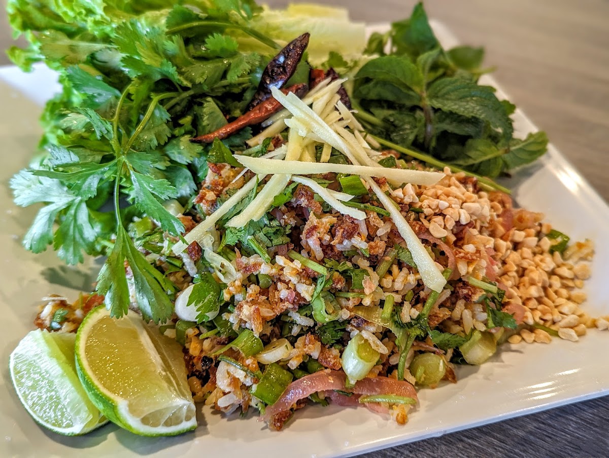 Now, let’s talk about the food! Green Papaya offers an array of tantalizing dishes that cater to every palate. Start your meal with their signature Nam Kao salad, a symphony of flavors with crispy rice and fresh herbs for just $15.75, or try the Papaya Salad for a refreshing balance of spicy, sweet, and tangy for just $10.50. For those craving warmth, their Tom Yum Chicken Soup packs a zesty punch at $14.95, and is a favorite among regulars for its bold flavor and comforting broth.